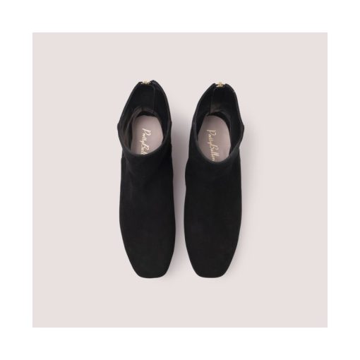 Short boot with back zipper and 2 inches heel in black suede. A winter trend keeping it classy