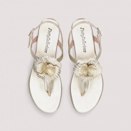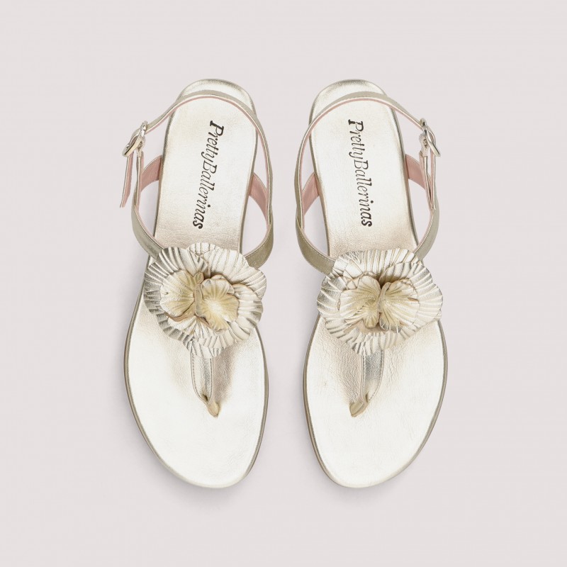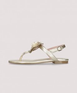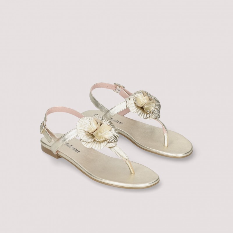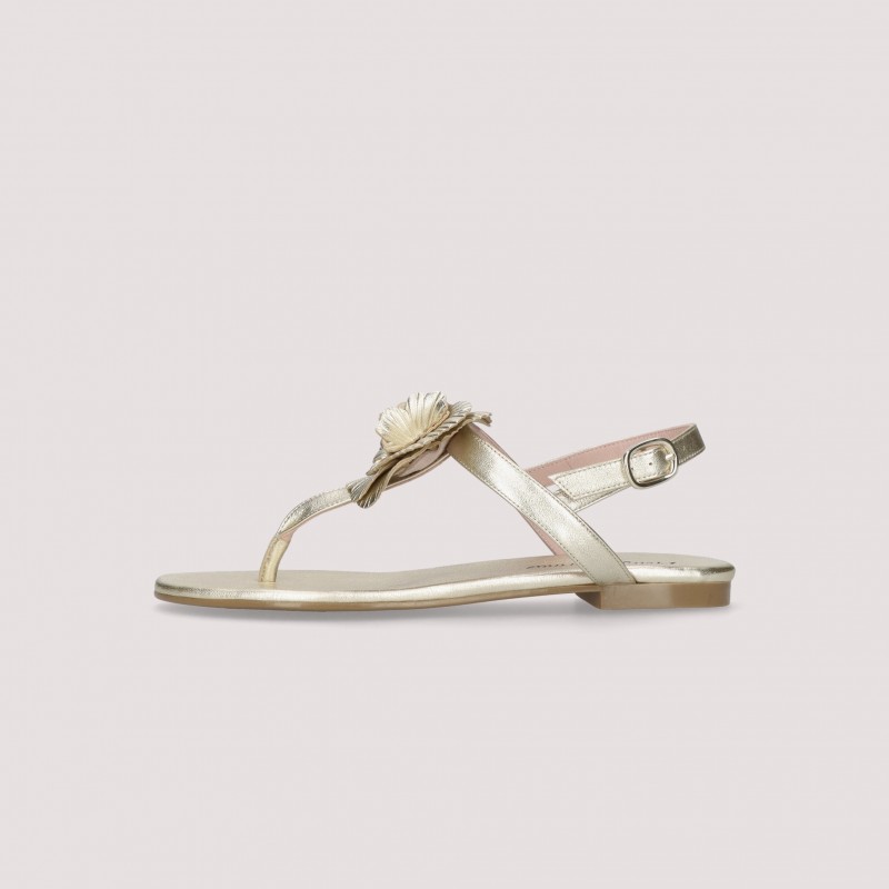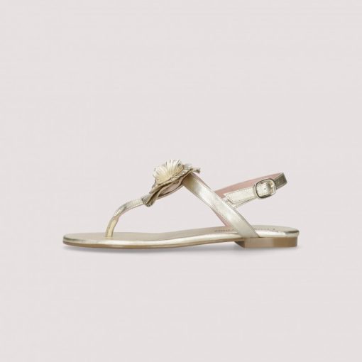 Judy Sandal in soft gold metallic leather with oversized flower.