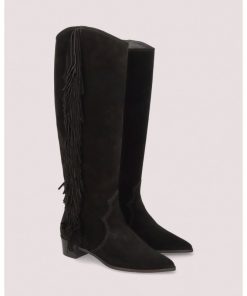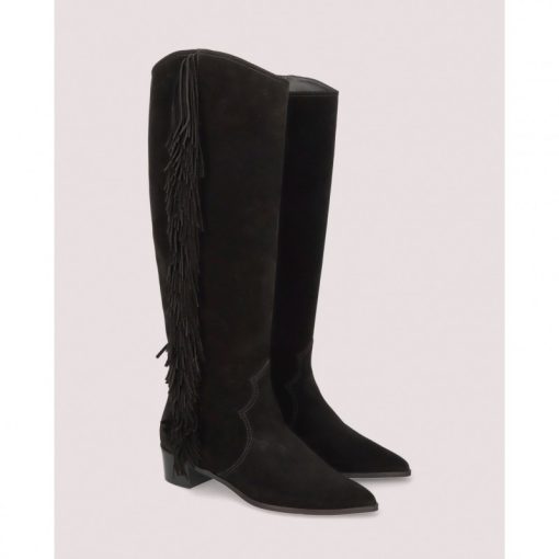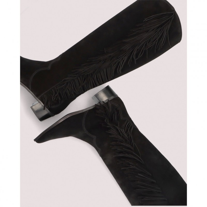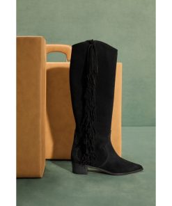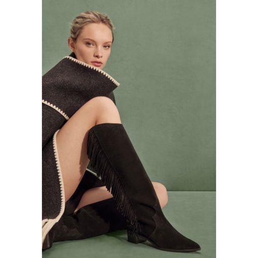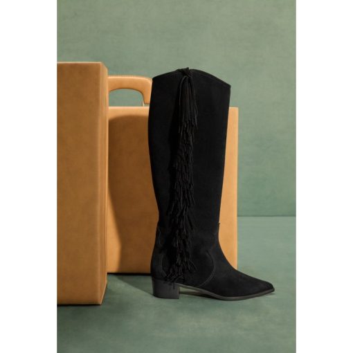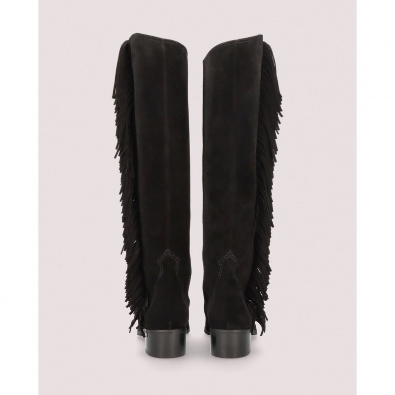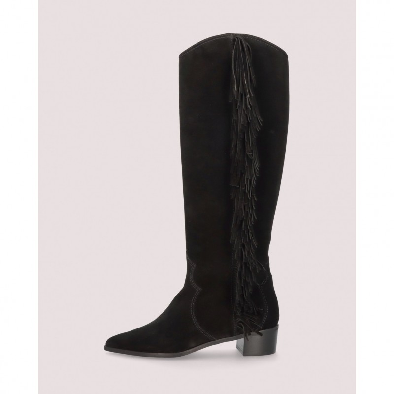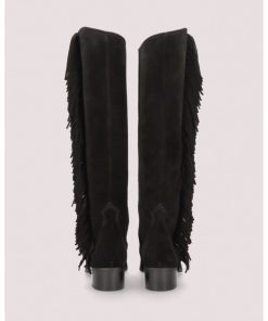 Knee high boot Kendall with 2 inches heel in black suede with tassel detail, rubber sole, leather insole and lining. The elegant version of the newest cowboy trend.