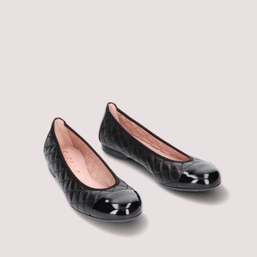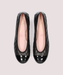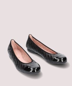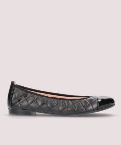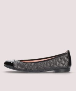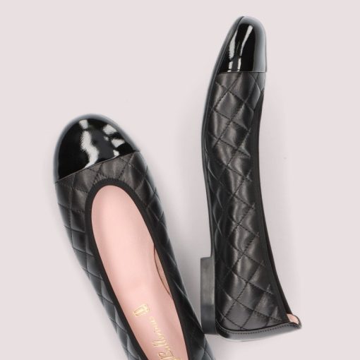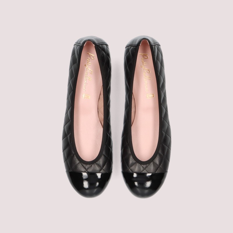 Bendy ballerina with a flexible rubber sole. Quilted black leather with black patent toe. . Runs small, we suggest you to buy 1/2 size up