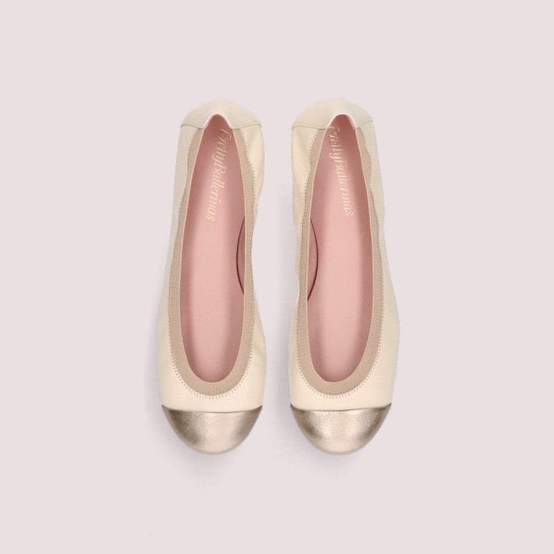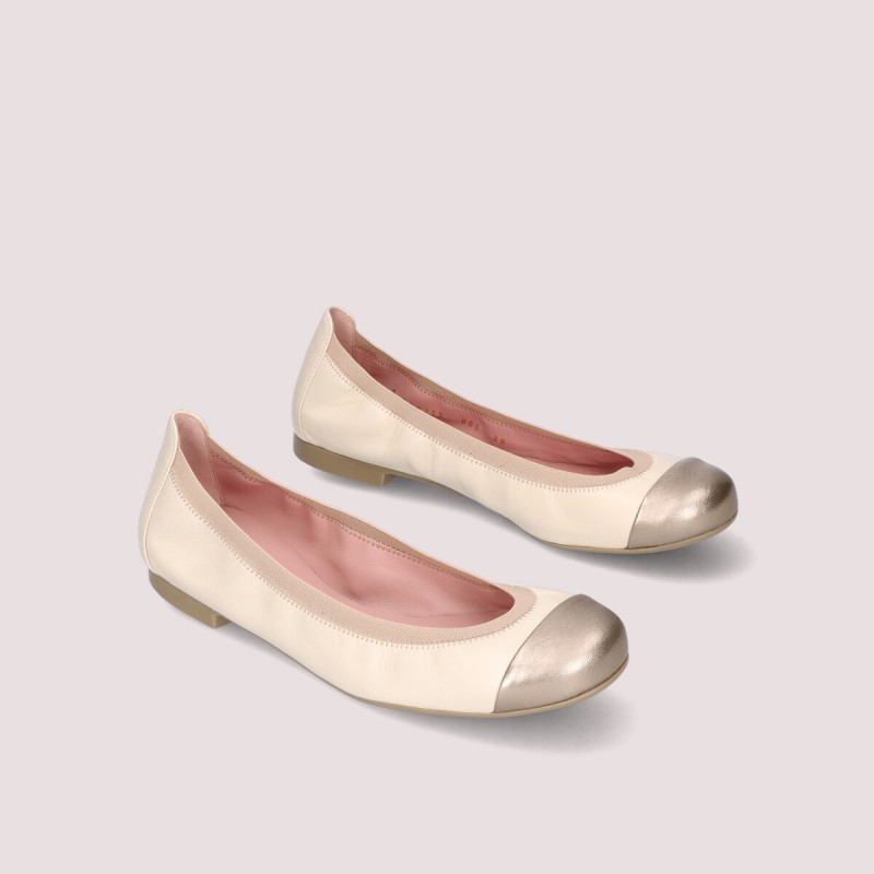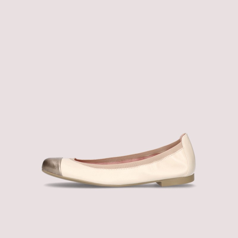 Our Shirley style is a bendy ballerina with a flexible rubber sole and 1cm heel. Soft cream leather with metallic gold toe cap. . Runs small, we suggest you to buy 1/2 size up