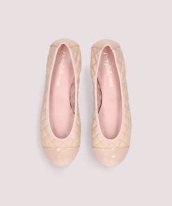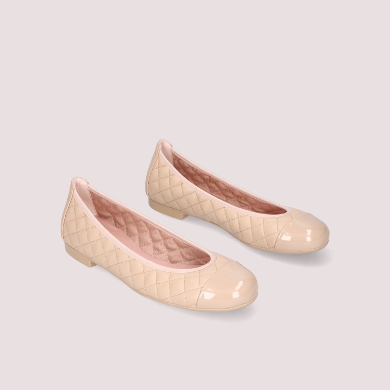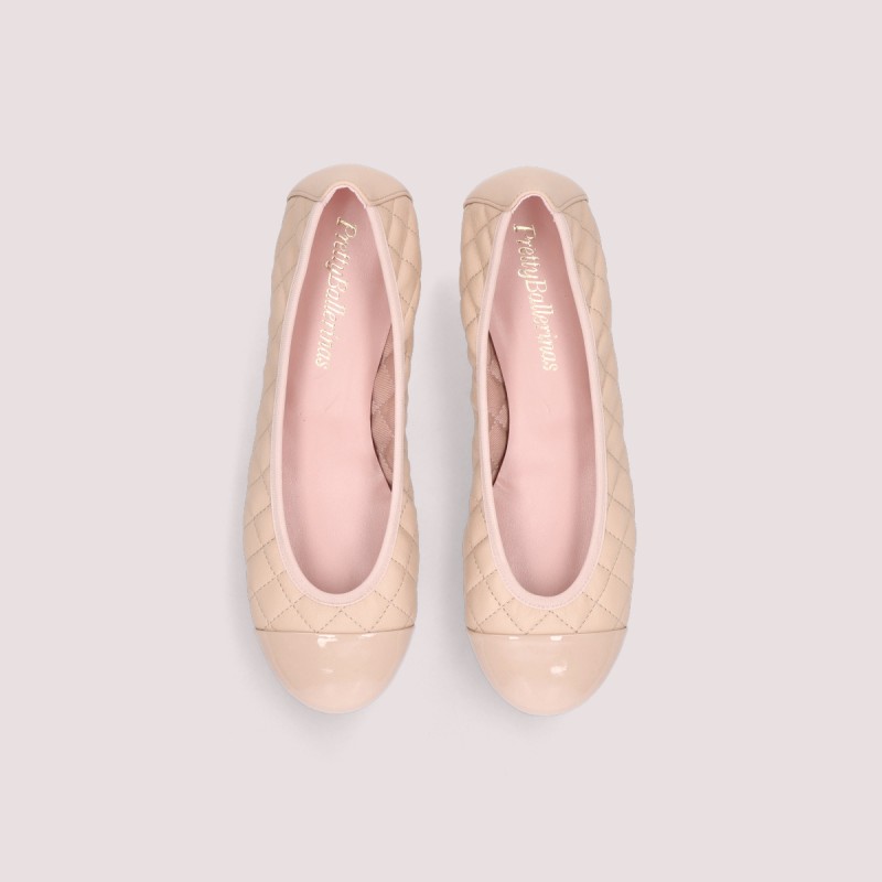 Our quilted Shirley in soft nude leather and nude patent toe. . Runs small, we suggest you to buy 1/2 size up